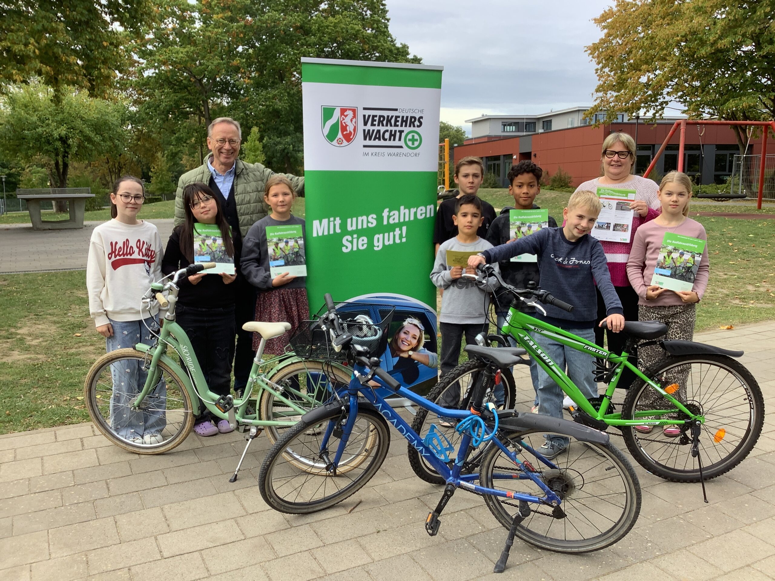 Grund- und Förderschulen im Kreis Warendorf haben aktuell kostenfreie Medienpakete zur Radfahrausbildung erhalten. Die Aktion wird von der Landesverkehrswacht NRW in Zusammenarbeit mit den Ministerien für Umwelt, Naturschutz und Verkehr sowie für Schule und Bildung durchgeführt.