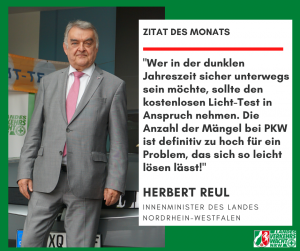 Dazu NRW-Innenminister Herbert Reul: „Wer in der dunklen Jahreszeit sicher unterwegs sein möchte, sollte den kostenlosen Licht-Test in Anspruch nehmen. Die Anzahl der Mängel bei PKW ist definitiv zu hoch für ein Problem, das sich so leicht lösen lässt.“